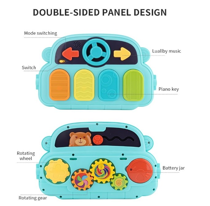 ★ Interactive Piano Panel: Brightly colored keys and engaging sounds encourage auditory stimulation and hand-eye coordination. Each key is designed to respond with cheerful melodies, enhancing sensory development.