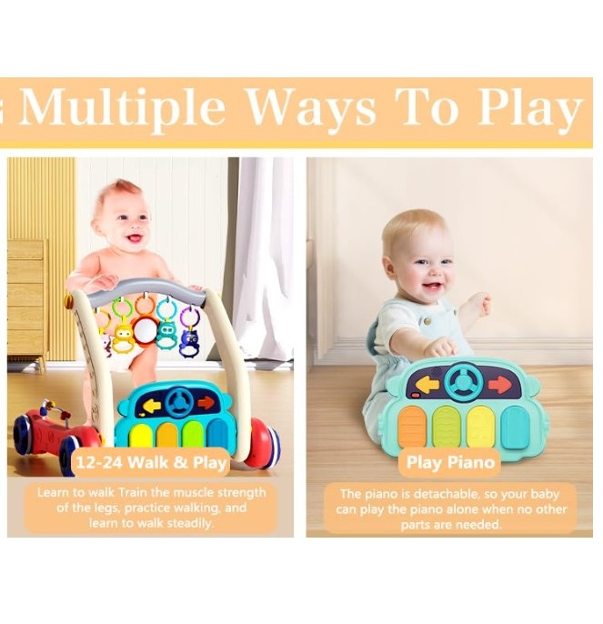 ★ Dual Functionality: Transforms easily between a sit-and-play piano activity center and a sturdy push walker to support your baby’s first steps.