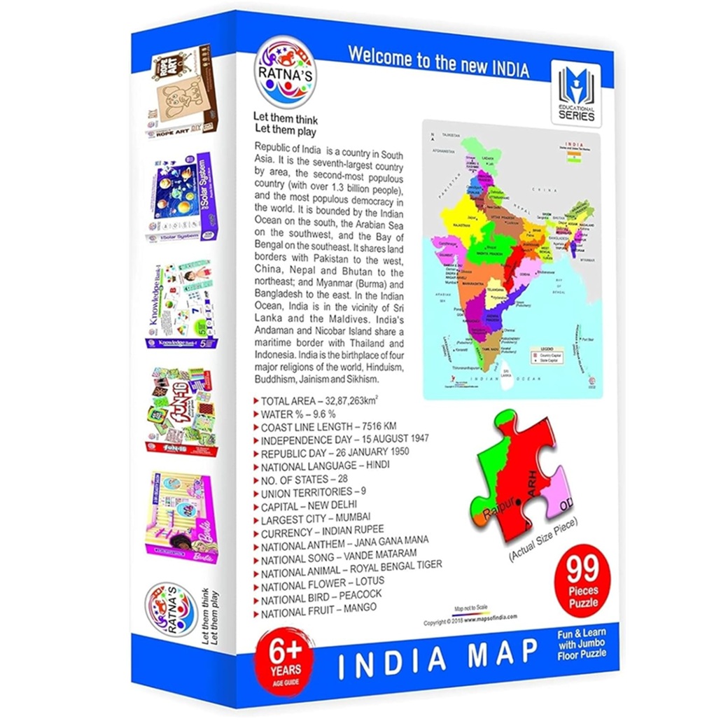 Embark on an exciting and educational journey across India with Ratna’s India Map Puzzle! Designed for curious minds aged 6 and above, this 99-piece jigsaw puzzle introduces children to the geography, states, and union territories of India in a colorful and engaging way. Whether at home or in a classroom, it’s a perfect blend of learning and play.