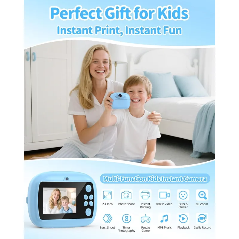 - Zero Ink Printing: The camera uses Zero Ink (ZINK) printing technology, eliminating the need for ink cartridges, making it safe and mess-free for kids to use.