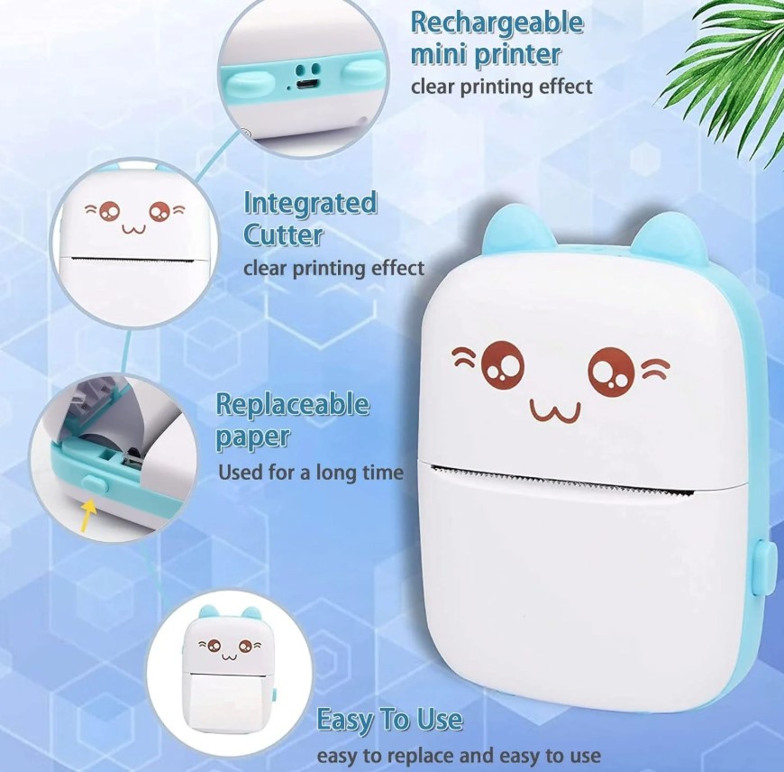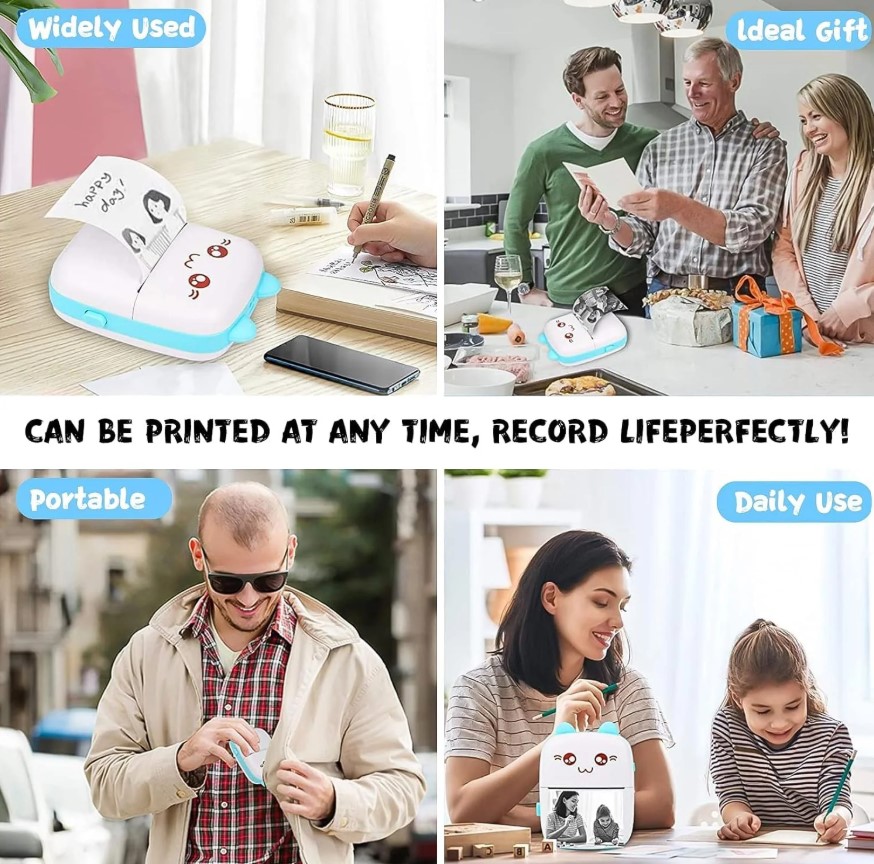 • Our Bluetooth thermal printer is USB charging, built in 1200mAh battery, can be powered by power bank or connecting any adapter. Perfect for labeling file folders, food storage, organizing clothes, food containers, jars, bottles, etc. Cute cartoon design of also adds a touch stylish to this printer, making it a nice gift for students, kids, and anyone who values the functionality and fashion.